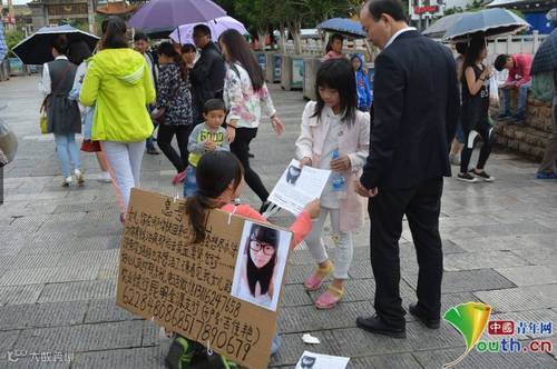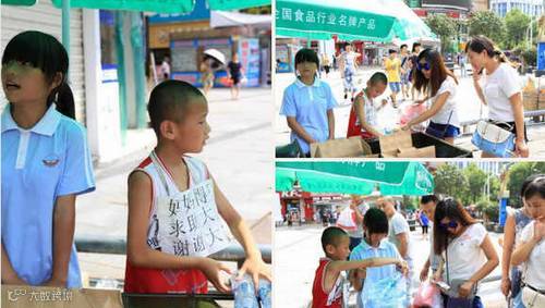 为妈妈治病上街筹钱的孩子