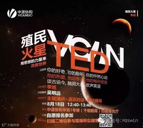 2016年8月18日,一场以“殖民火星”为主题的“中源协和TED”分享,为小伙伴们带来了一场天马行空般令人“脑洞大开”的认知新体验。