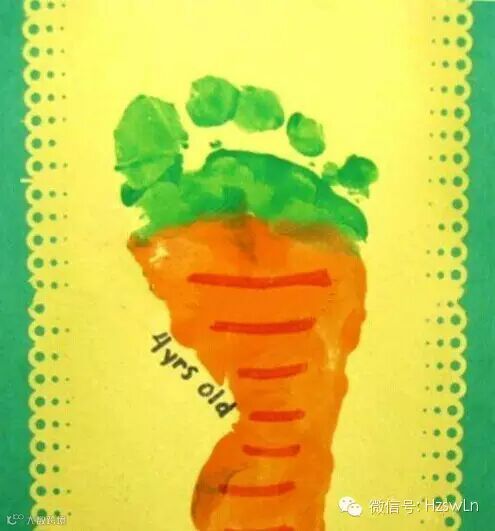 这是我最爱的生日纪念,用小脚印出小胡萝卜,每个生日都完成一张,比一比,成长停不下来!