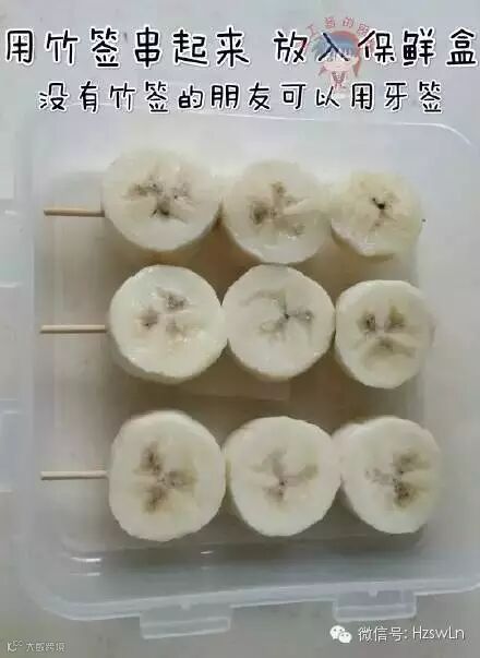 1.没有竹签的可用牙签代替,或者直接不用,一片一片码入保鲜盒,但翻面时就需要用筷子帮忙了。速度要快,不然香蕉容易氧化变黑。