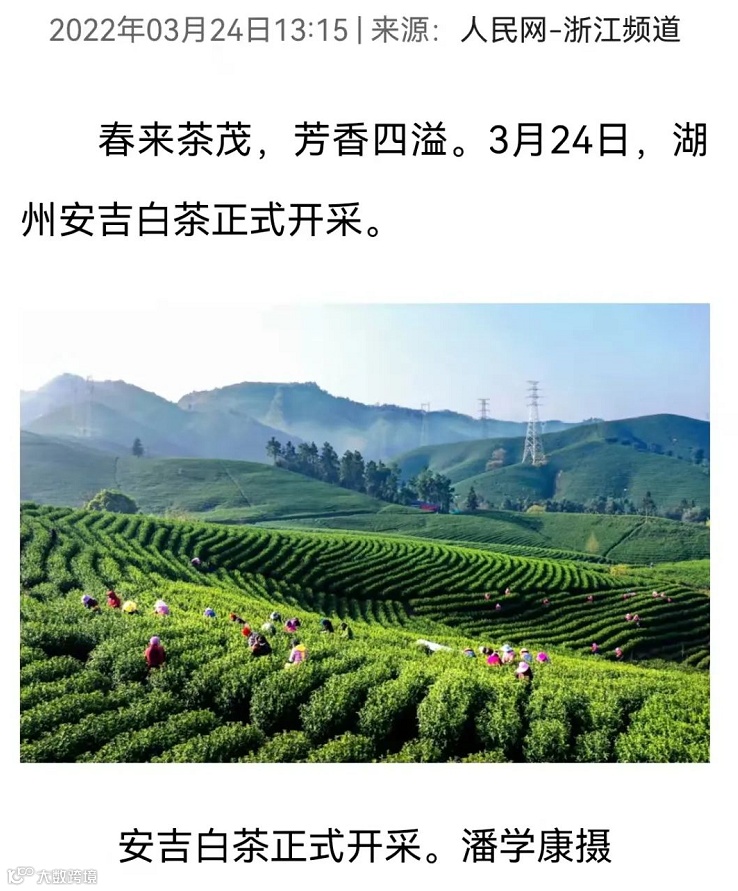 2022年春茶季,受疫情和反常天气影响,茶叶采收和销售频频面临挑战,但安吉白茶也依然坚持品质如一,采摘、摊放、杀青、理条、揉青、初烘、摊凉、复烘,8道工序严格要求,缺一不可。