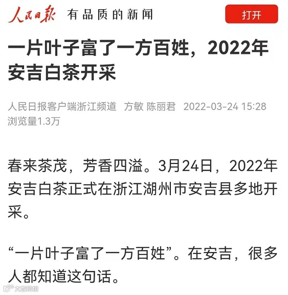 最近安吉白茶火了,登上人民日报,被称赞“一片叶子富了一方百姓”!那么安吉白茶到底好在哪?
