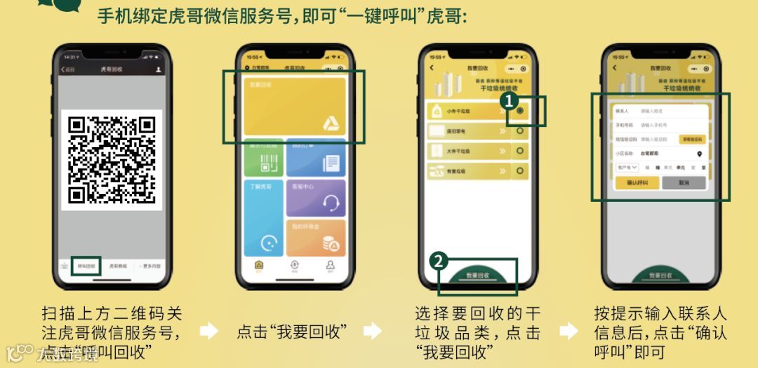 “我们建议住户多使用微信下单的方式呼叫虎哥。所有的订单都有详细的信息,手机还有智能提醒,这样就能及时的上门回收了。”冯站长说。