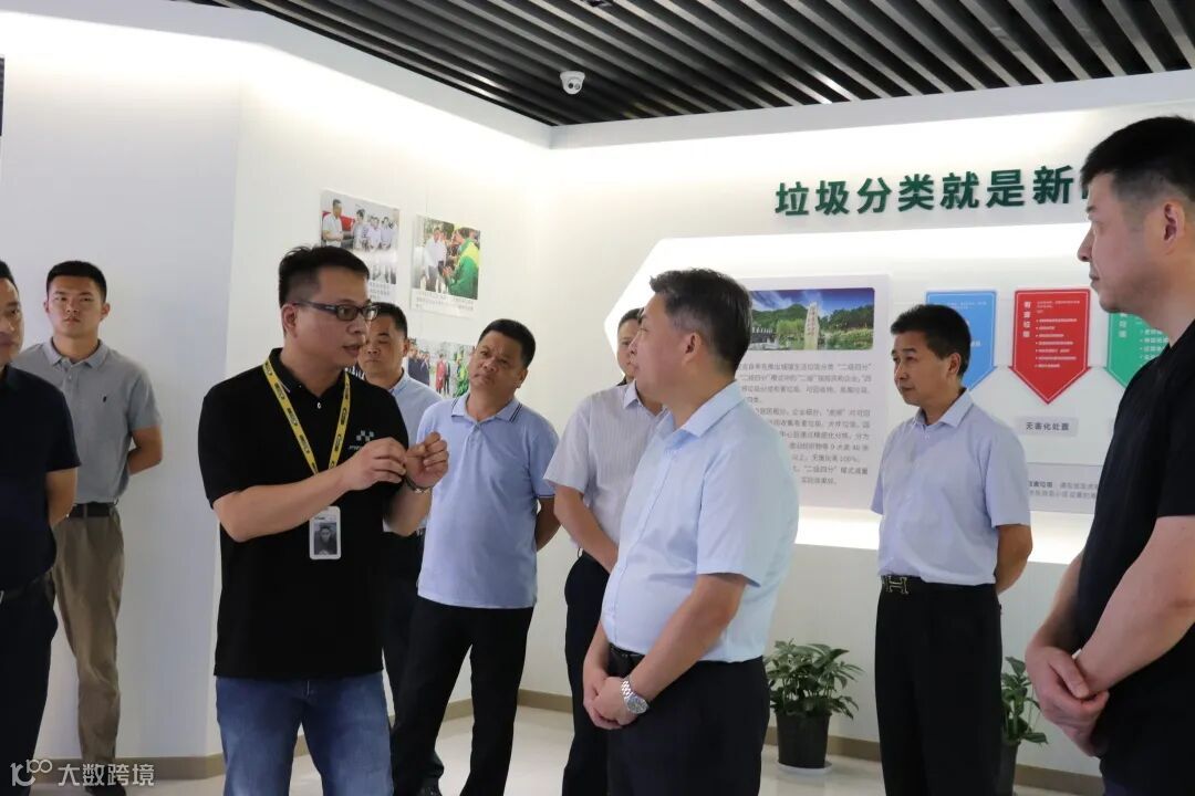 在安吉虎哥服务有限公司,沈书记等领导一行参观了“虎哥”大数据中心和分拣中心,浙江虎哥环境有限公司副总经理唐力、安吉虎哥环境服务有限公司总经理许经纬全程陪同讲解。