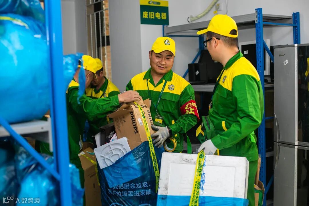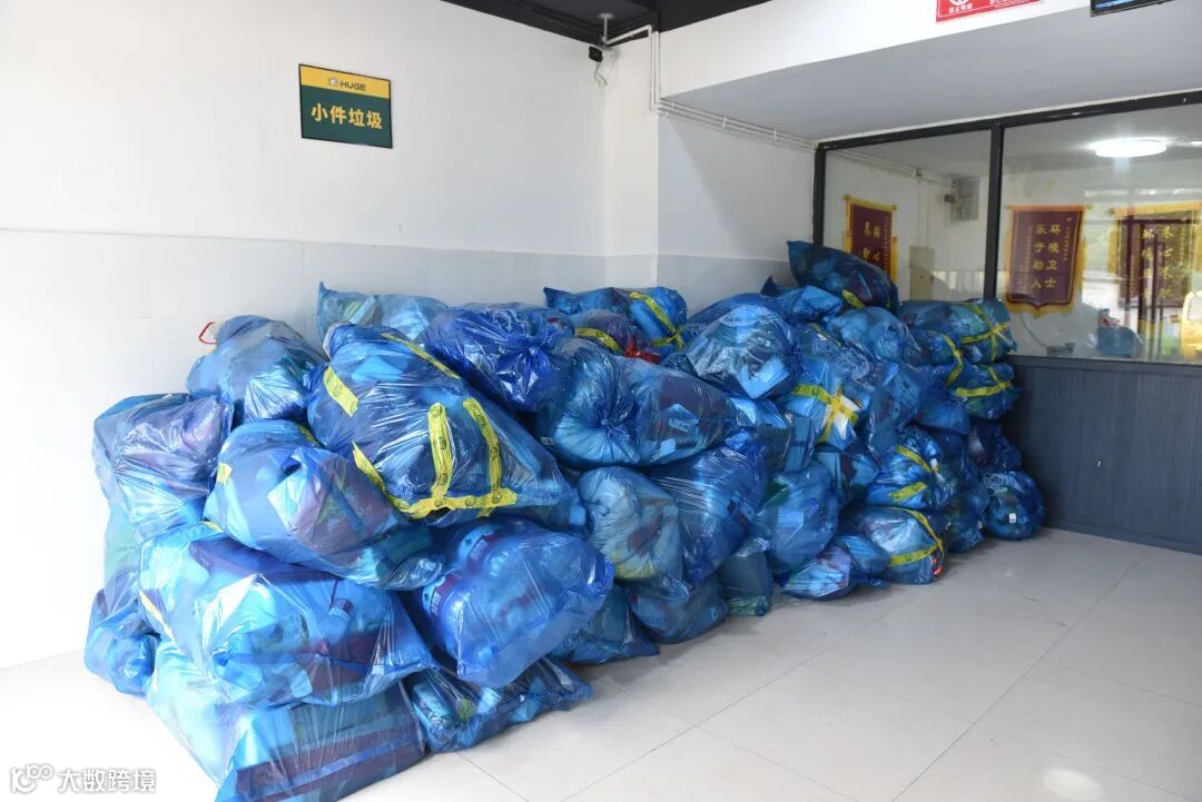 简单分类后的生活垃圾整齐堆放在服务站