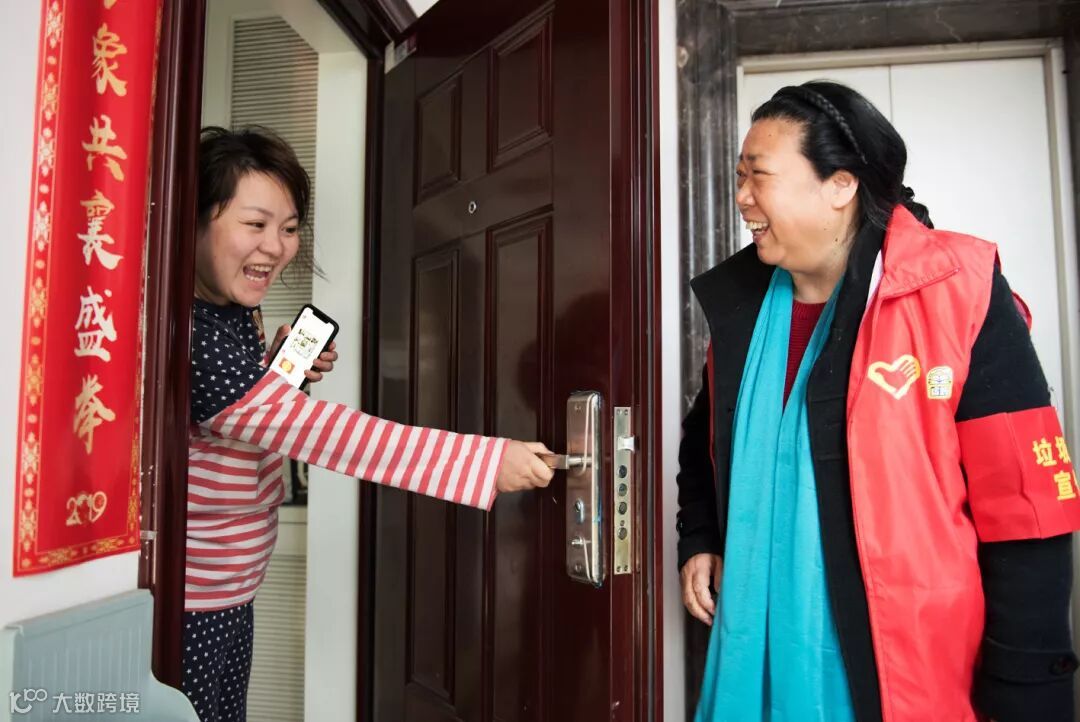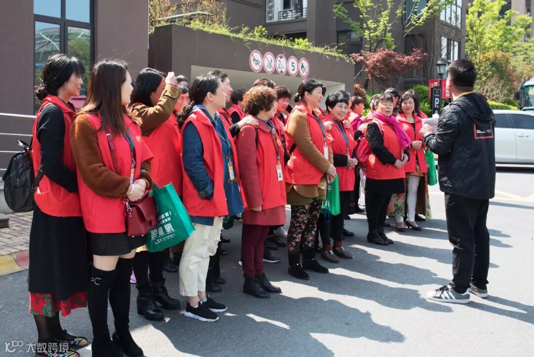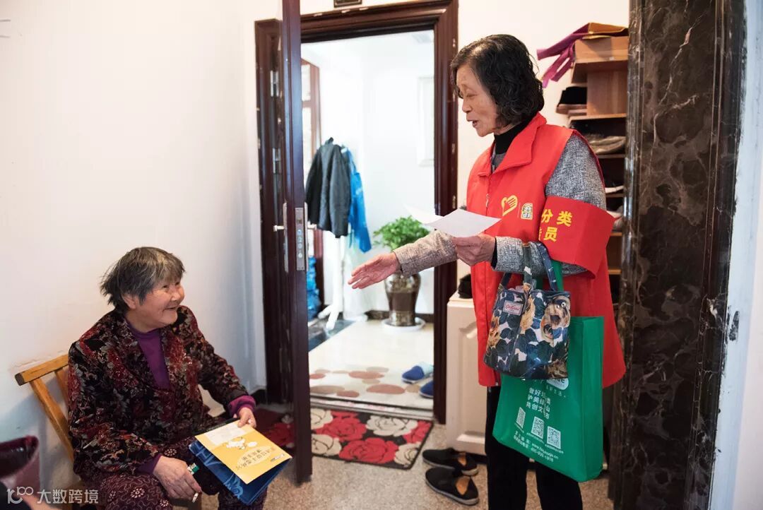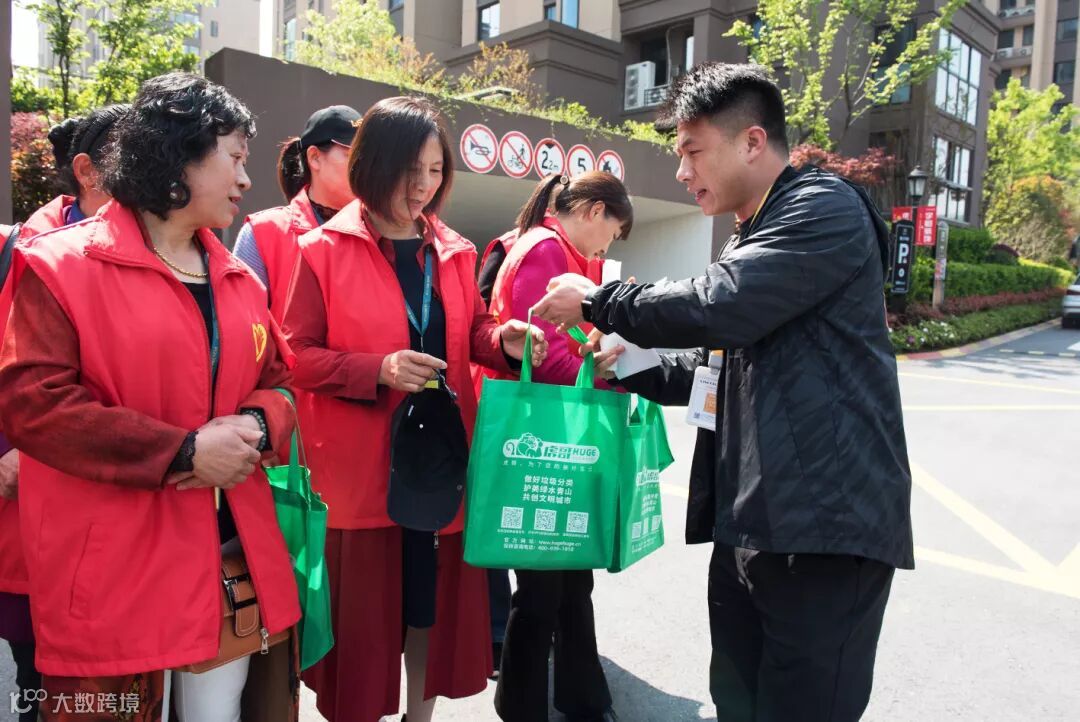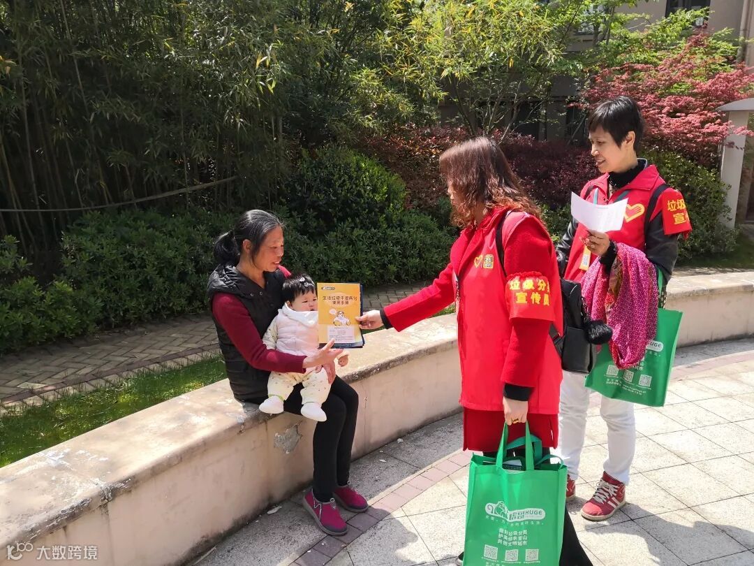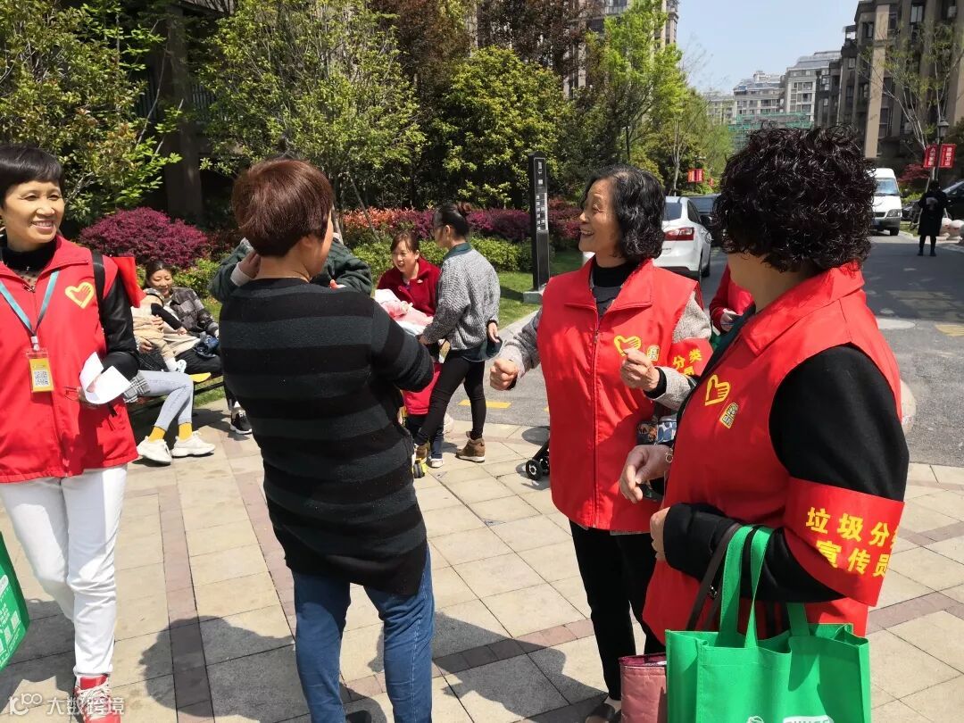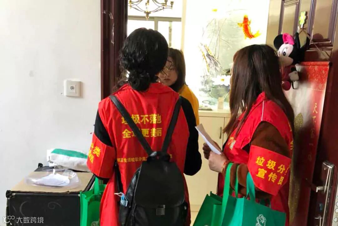 到达安吉虎哥龙山玺园服务站后,余杭虎妈们和安吉虎妈们互相交流着工作的心得,逐渐熟络起来。随后虎妈们两人成一组,来到小区内入户宣传垃圾分类。