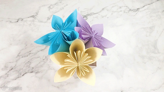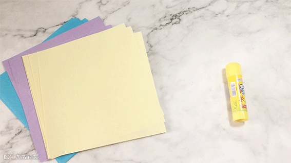 材料:手工彩纸(家里的废旧纸张也可以哦,可以折出不一样的樱花呢)、固体胶