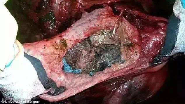 鲸鱼的胃被30个塑料袋塞满了