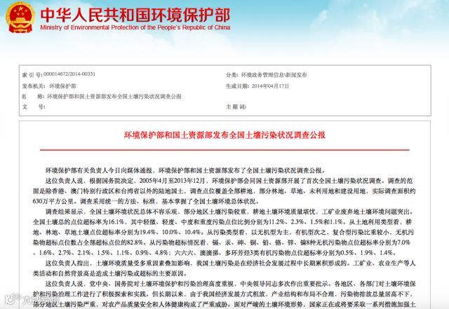根据这份公报,中国有近两成的土地不但被污染,而且某种、多种污染物超标。这个面积有多大呢?相当于英国国土面积那么大的土壤都是污染的,需要进行环境修复才能使用。如果这种污染的土壤不经过修复,而是用来做为商业用地、住房用地、学校或者农田,那就可能产生二次污染,甚至给使用土地的人带来健康损害。