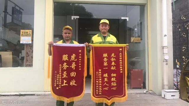 近日,杭州市智晟物业服务有限公司余杭分公司送给余杭街道西城时代虎哥回收服务站一面锦旗。虎哥进入小区后,整体的小区环境改善了不少。“虎哥回收 服务至上”这句褒奖是小区物业对虎哥的衷心感谢。