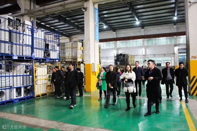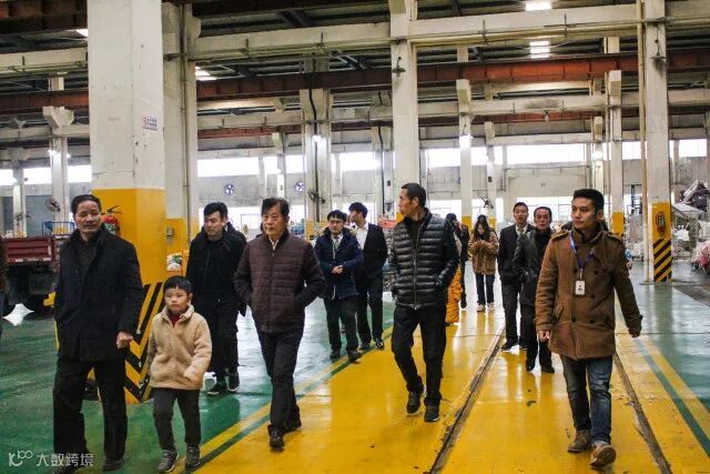 在虎哥回收服务站内,考察团仔细听取了关于虎哥回收运行模式的介绍,而后又前往虎哥回收环保基地实地考察。