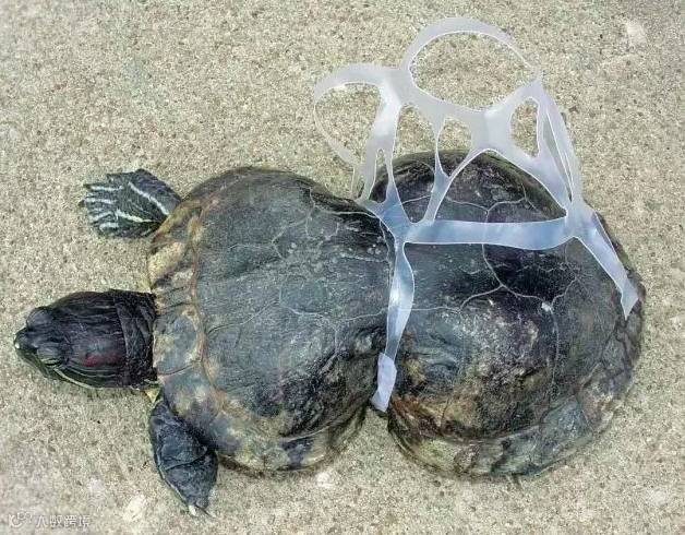 被塑料困住的小乌龟,身体变了形