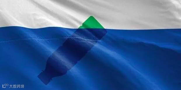 国旗为一个倒置于海洋中的塑料瓶