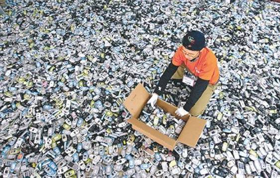 据了解,这些被废弃的手机中,全球只有9%-10%进入回收中心,中国的回收率则远远低于这个水平。环保专家表示,手机在生产过程中会用到一些重金属原料,虽然含量少,但还是会流出污染土壤和地下水,而仅一块废旧手机电池的污染强度是普通干电池的100倍,可污染6万升水。