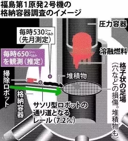 东京电力公司投入蝎型机器人进行调查,推测出福岛第一核电站2号机反应堆安全壳内的辐射剂量达到每小时650西弗。清理道路的机器人原定前进5米,结果只前进了1米,因为图像变暗,不得不撤出。