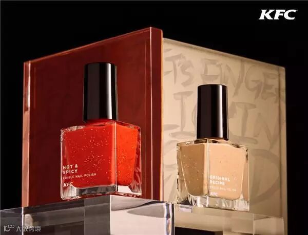 据香港媒体报道:为了庆祝KFC入驻香港三十周年,他们推出了“点指回味”可食用指甲油,这款指甲油号称使用天然的原料制造。