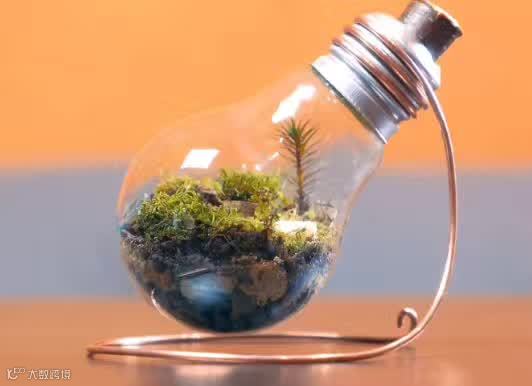 家里废弃的灯泡,退休”后也能发挥余热。把金属头打通,去除灯泡内的钨丝,就可以变成鱼缸和小盆景,灯泡壁透明的特点,绝对是做观赏小景的最佳材料!