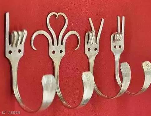 叉子弯曲定型,制作的挂衣钩