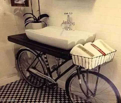 废弃自行车作为手盆架