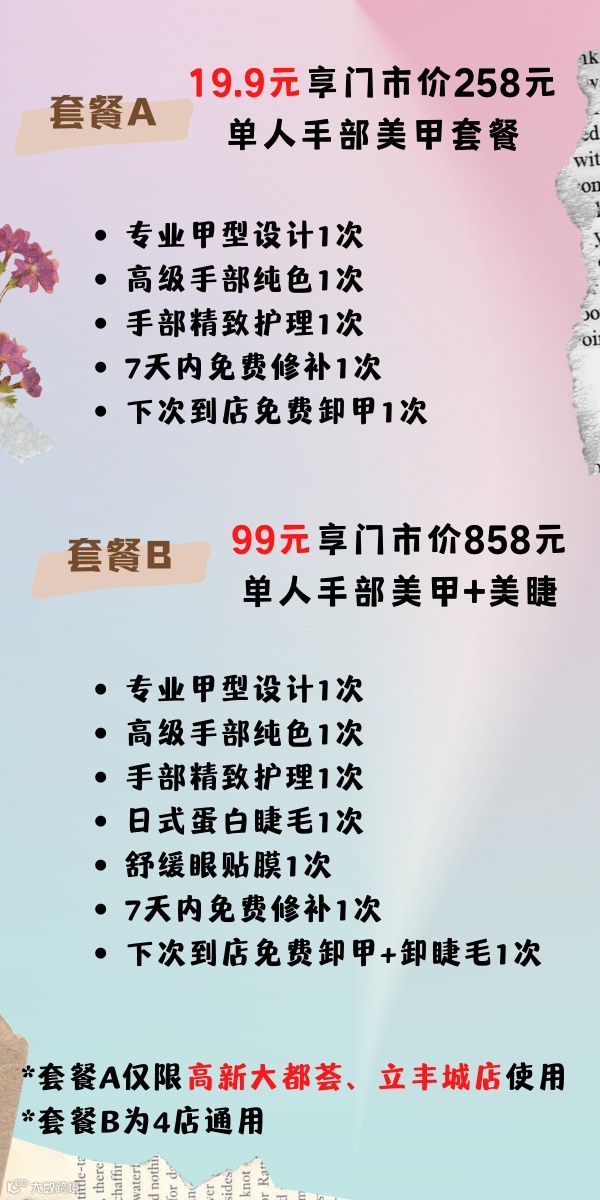 *A套餐仅限高新大都荟与立丰城店使用;B套餐不限制店面