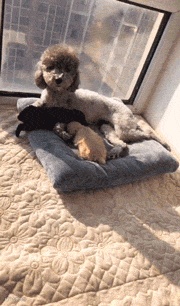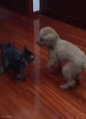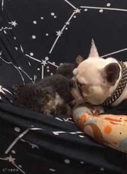 贵宾在睡觉不陪它玩,法斗就对着人家吹气...