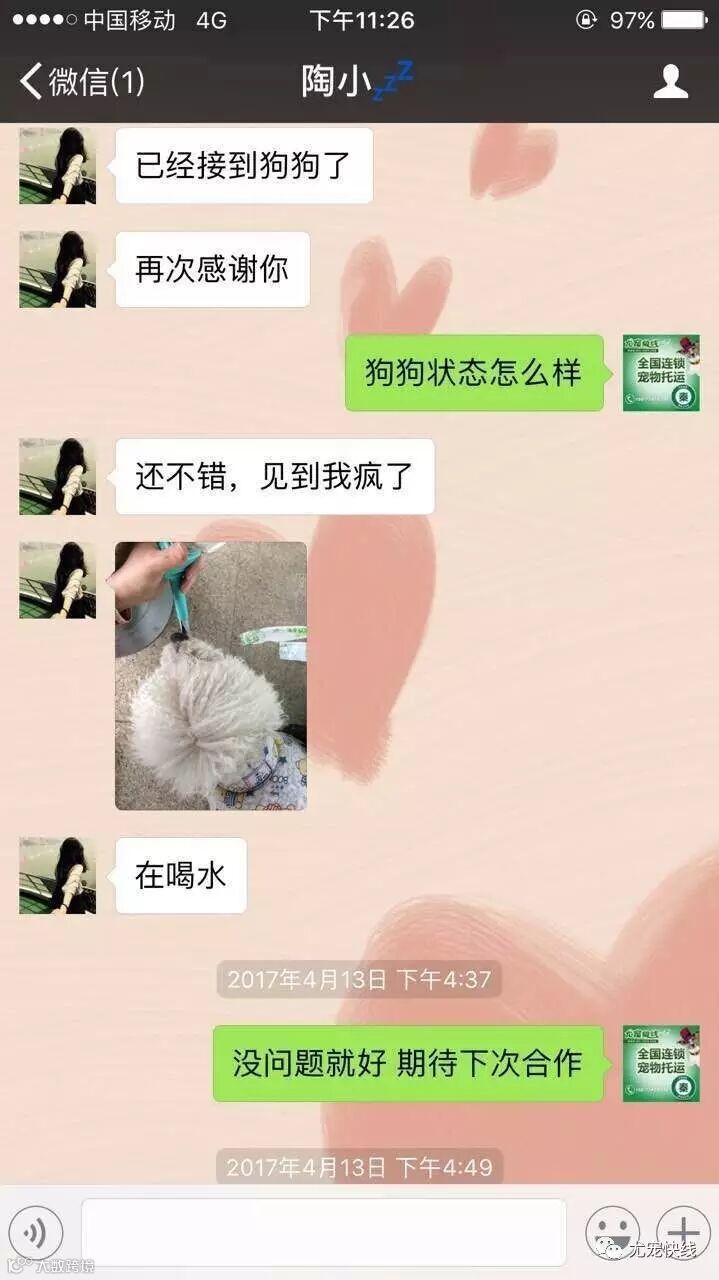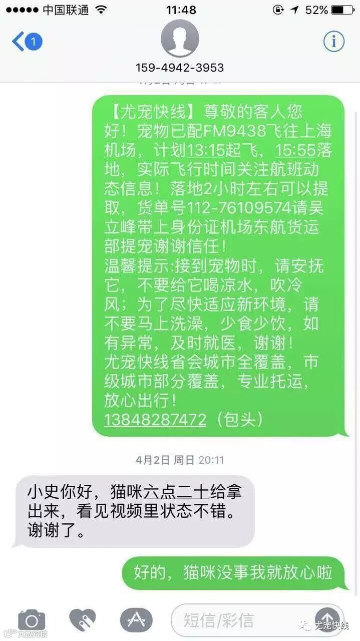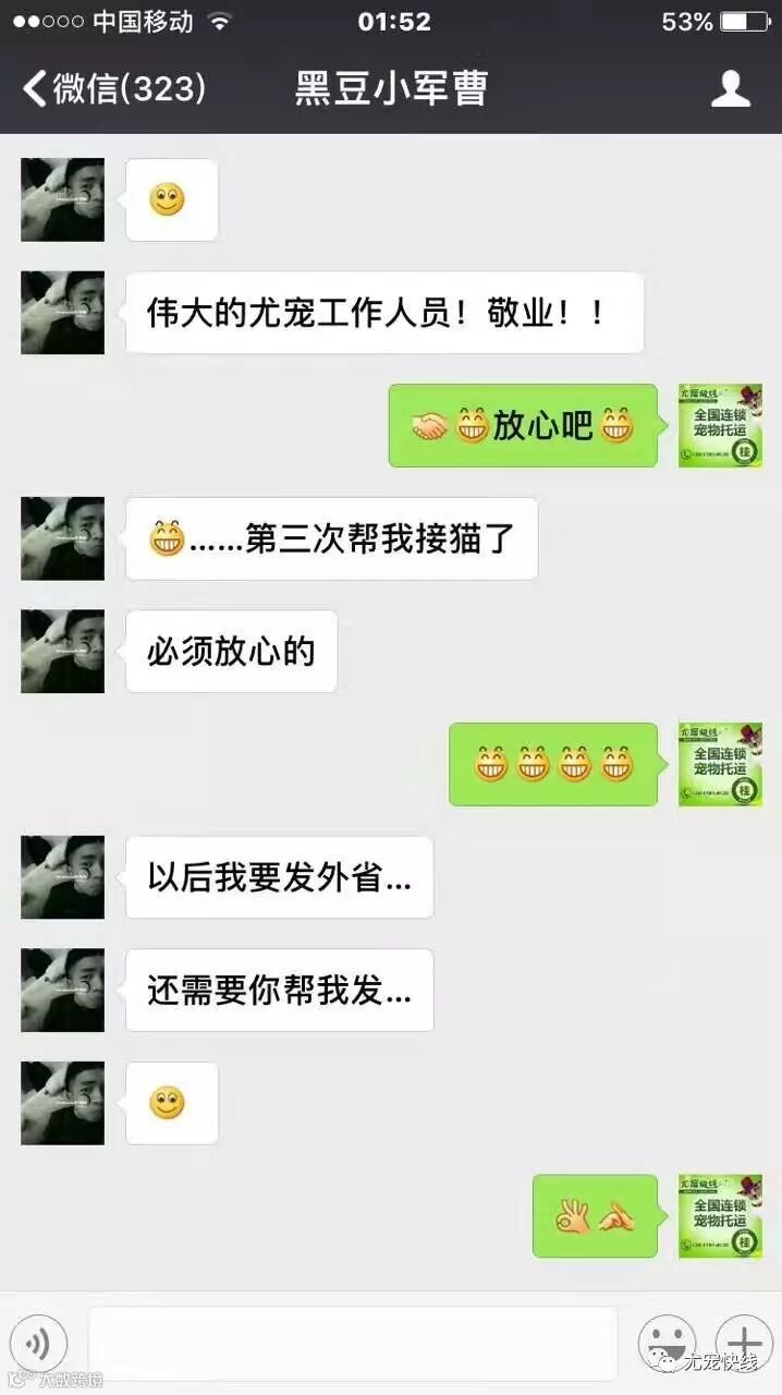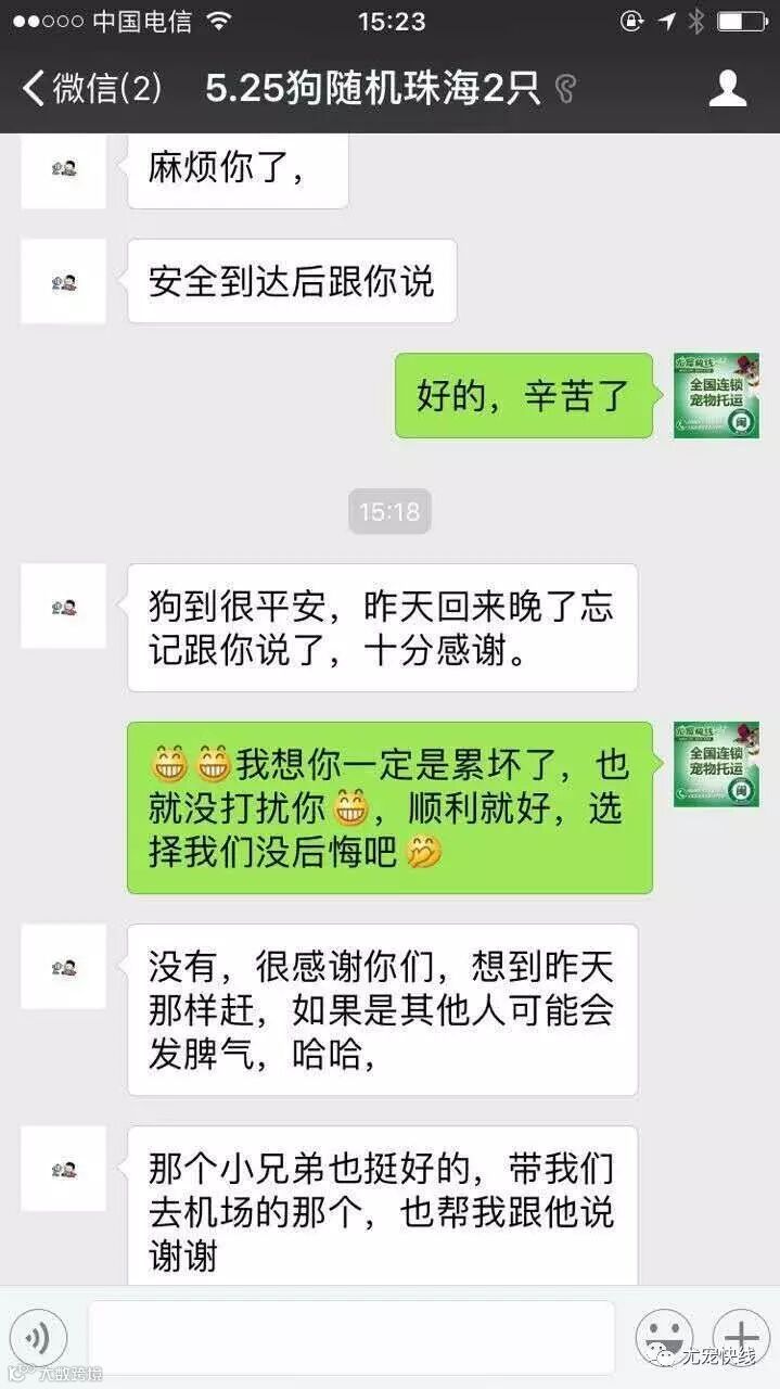 尤宠快线秉承“用爱回报信任”的企业服务宗旨,倡导宠物托运过程中的人性化、专业化,保证宠物的安全和舒适的送达,让所有的宠物爸爸妈妈放心和安心。以下是我们五月份的客户真实案例见证 :