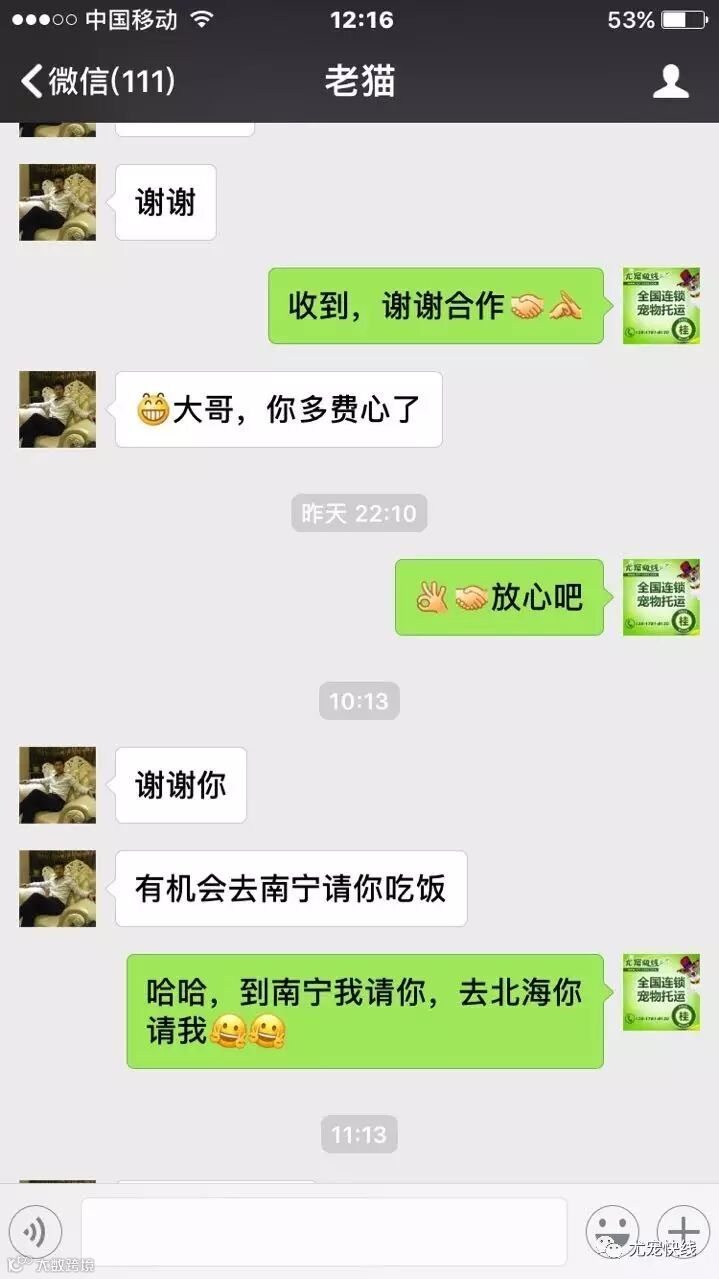 尤宠快线宠物托运平台尤宠快线秉承“用爱回报信任”的企业服务宗旨,倡导宠物托运过程中的人性化、专业化,保证宠物的安全和舒适的送达,让所有的宠物爸爸妈妈放心和安心。以下是我们五月份的客户真实案例见证 :