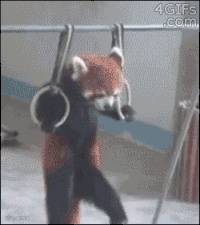 原来小熊猫天生是体操高手啊!就是乃的表情不要这么贱贱的好吗?