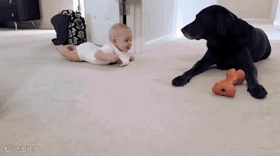 试想一下,家里突然添了一个可爱的Baby,开心的除了爸比妈咪,爷爷奶奶姥姥姥爷七大姑八大姨外,最开心激动的肯定是狗狗了!!