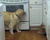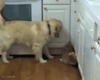 金毛怕伤到这个新朋友