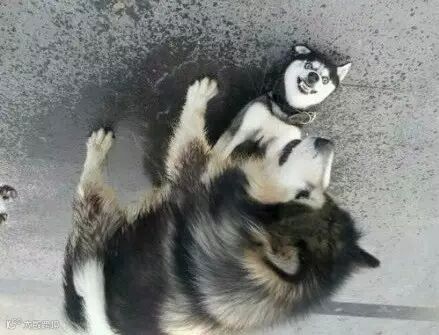 千万不要让哈士奇跟其他动物在一起太久,时间一长,蠢哈会忘记自己是条狗的事实。。。