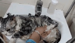 一只乖乖在洗澡的喵星人