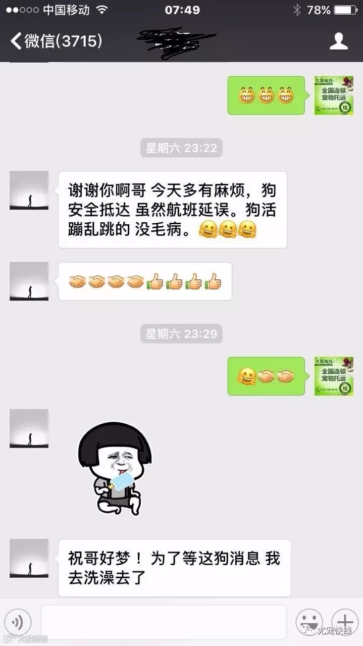 尤宠快线秉承“用爱回报信任”的企业服务宗旨,倡导宠物托运过程中的人性化、专业化,保证宠物的安全和舒适的送达,让所有的宠物爸爸妈妈放心和安心。以下是我们七月份下半月和8月部分客户的真实案例见证,为了保证客人的隐私,我们已将客人名字隐去 :