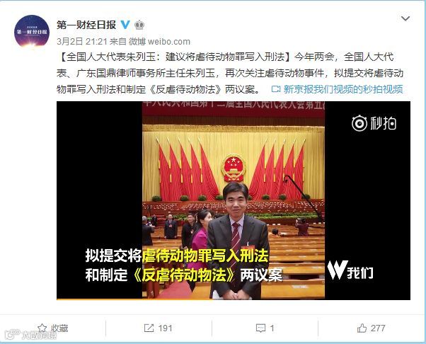 朱代表:建议尽快将虐待动物罪写入刑法,引导人心向善。
