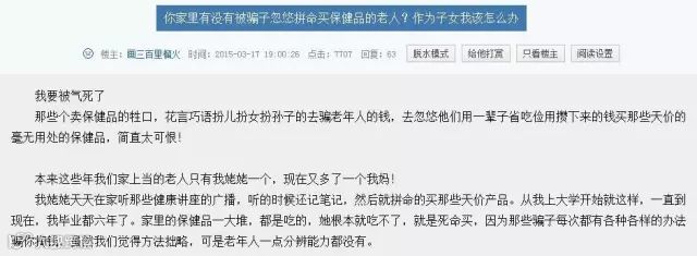 ▲你家里有没有被忽悠拼命买保健品的老人?(图片来源:天涯论坛)