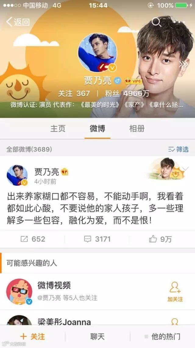知名影视明星贾乃亮也对此事件在微博上发表了意见: