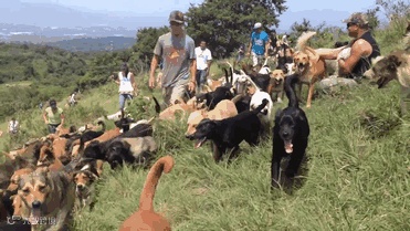 任何来到这里的人都可以花很多的时间跟狗狗在一起玩耍,他们可以带着狗狗逛整个风景区,要是愿意的话也可以收养一只带回家。