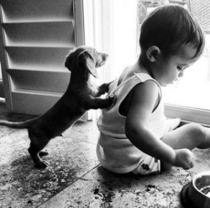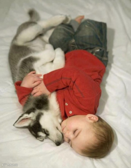 萌娃和宠物 看着好温暖好有爱