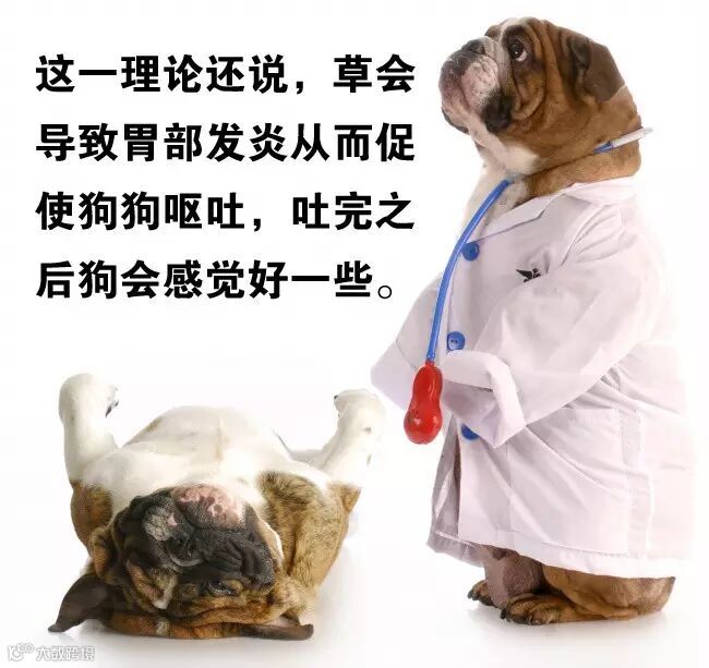2008年《应用动物行为科学》杂志上一项研究表明,研究人员发现虽然吃草并不经常导致呕吐,但是吃草看起来似乎生病的狗比做好准备去吃草的狗更容易呕吐。另一种理论认为狗吃草,仅仅是因为狗狗们想去吃草。在这种情况下,狗可能会讯早一种特定类型的植物,而不是去吃它能找到的任何种类的草。在找到它想要的草后,它才会去啃。