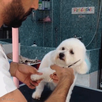 汪星人一脸呆萌,一副“请温柔以待”的矜持样儿。