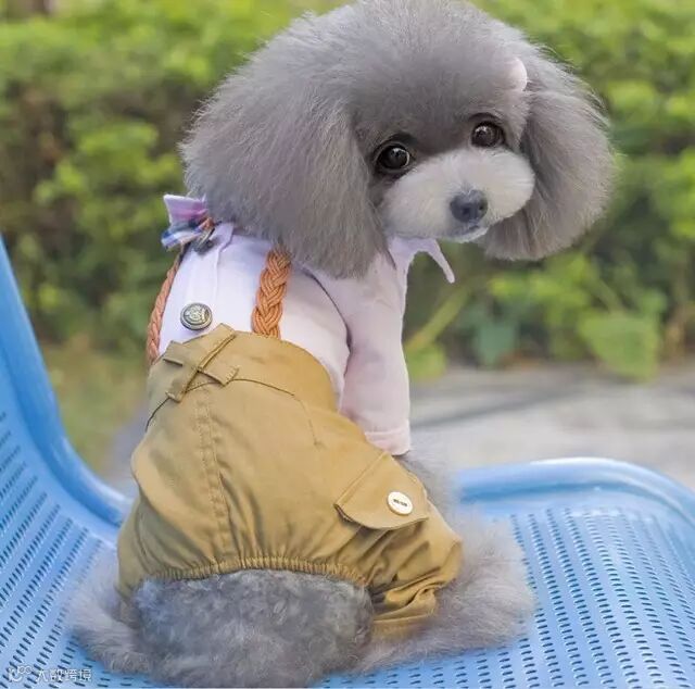 卷毛狗狗最好穿产生静电较少的材质的衣服,这样打结的概率较低,不过价格就稍微小贵一点!