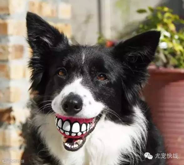 这是专门设计给爱玩接球游戏的狗狗的露齿球,利用狗狗嘴巴接咬球动作,呈现狗狗露齿大笑得借位效果。