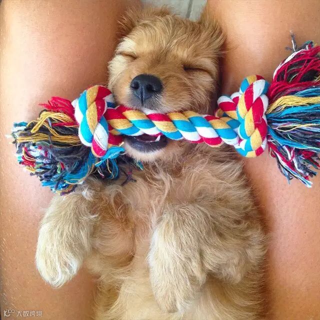 咬着玩具入睡……好乖~