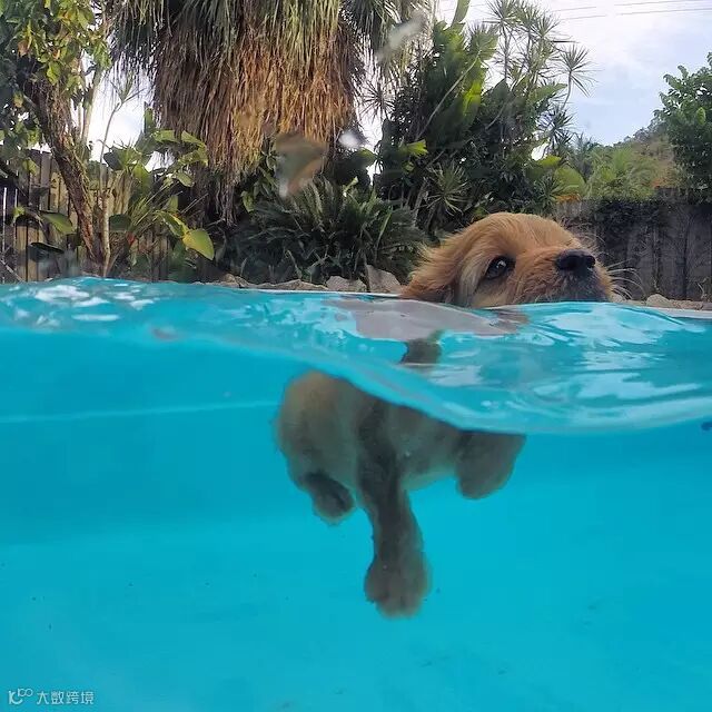 在水池里游泳,汪星绝技小狗刨!
