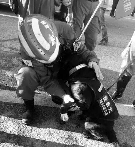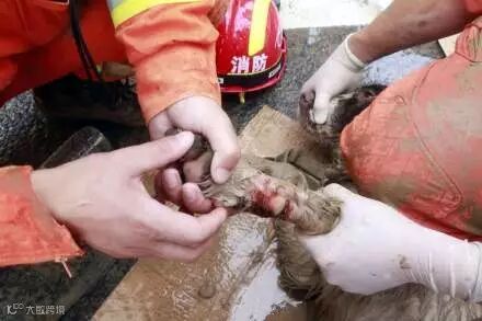 最后海亮累得趴在地上,平日里毛色鲜亮的它此时却一身泥浆,躺在碎石上,还受了伤,在场的人都心疼极了。