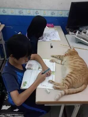 位在屏东的一家安亲班,有4只超疗愈的「猫助教」一起陪小朋友上课、午休、写作业。不过比起认真伴读,牠们其实比较常