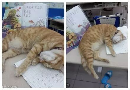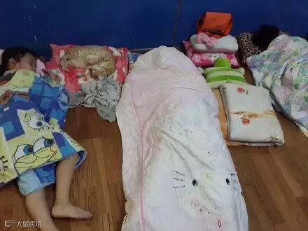 在课桌椅上、小朋友的大腿上睡到不醒人事。