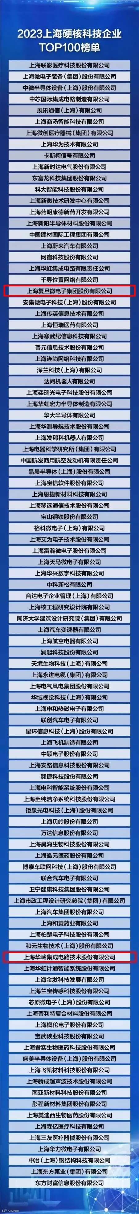 继2022年之后,上海复旦微电子集团股份有限公司及旗下控股子公司上海华岭集成电路技术股份有限公司再度双双荣登榜单。