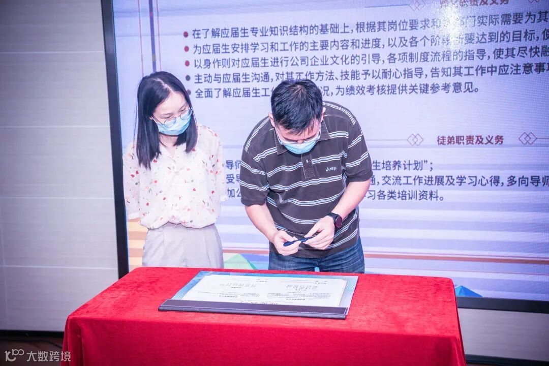 一纸契约签订,师徒结对,共同成长,师父杨勇立表示:对于新人的培养,我们会根据每个人的项目经验和学习经历来做针对性安排,从小模块开始上手,逐步增加内容,并积极引导新员工思考,发现问题解决问题。同时也会设置相应的评价机制。通过这样一种方式来帮助徒弟快速适应工作岗位,提升工作能力,为公司创造更多的价值”