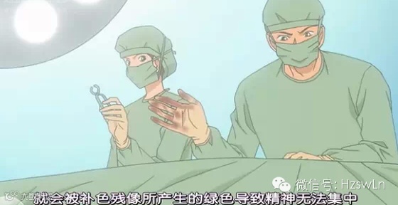 正如外科医生穿的手术服都是浅绿色,那是因为在手术中,一直看着鲜红的血,就会被补色残像所产生的绿色导致精神无法集中,因此要用同样的绿色来缓和。